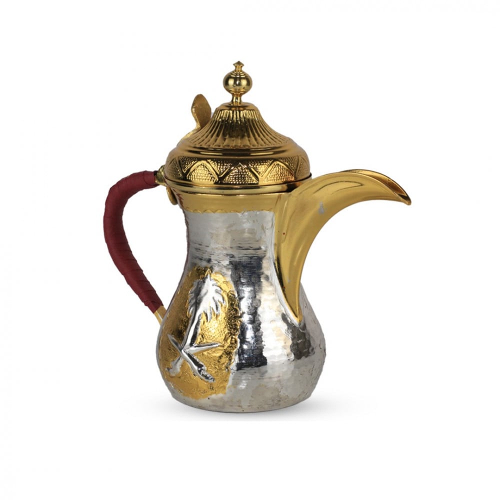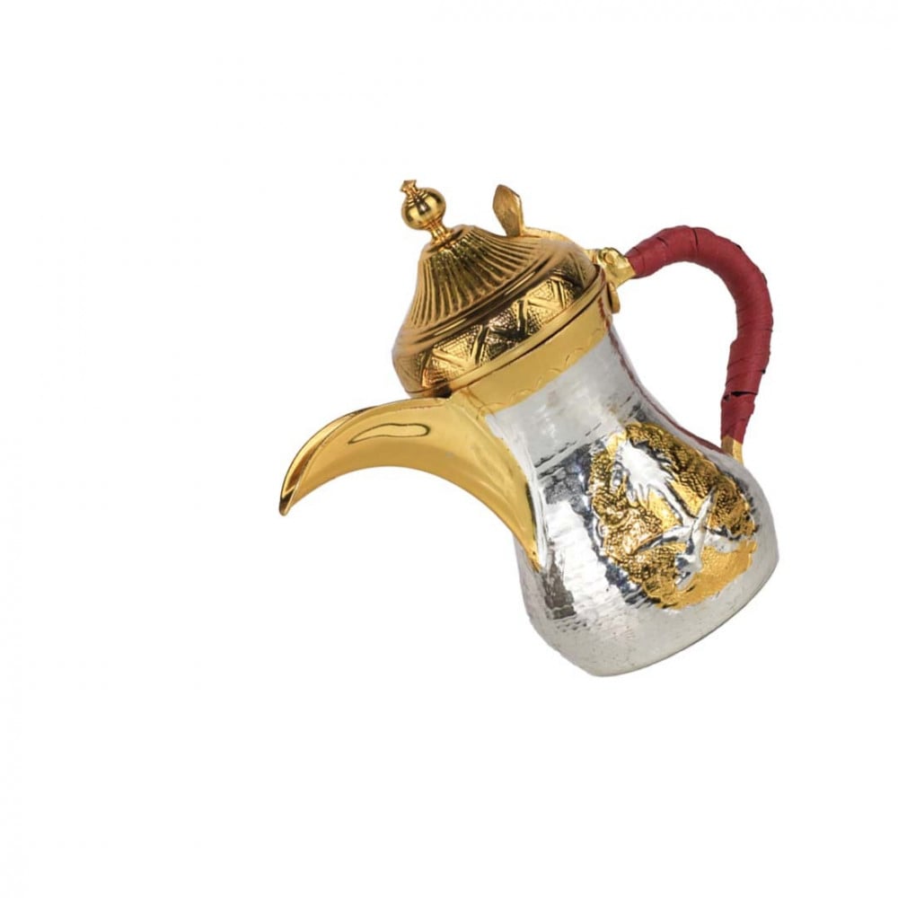 دلال وبراريددلة حب الرمـان السوري الحجم الصغير ، تـأخذ 4 فناجين من الحجم العادي مزينة باللون الذهبي ومقبض مزين باللون العنابي، تستخدم لتقديم القهوة.