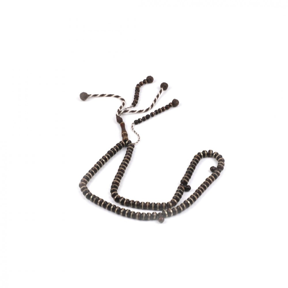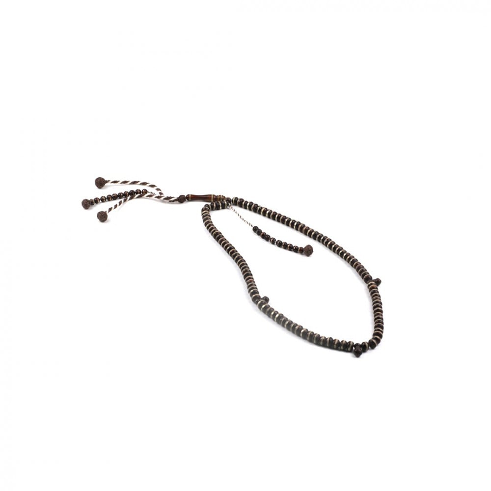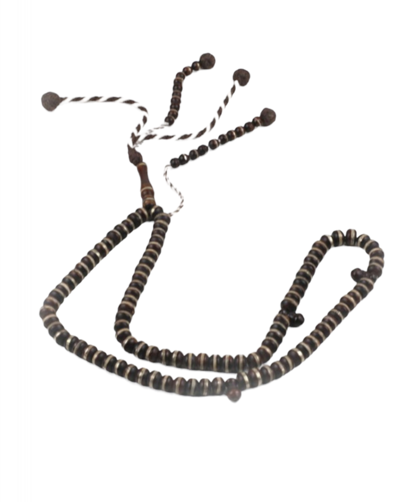 سبحة أنيقة مصنوعة من خشب الكوك، تحتوي على 100 خرزة من خشب الكوك ومزينة بالأهداب من الخيوط و الخرز.