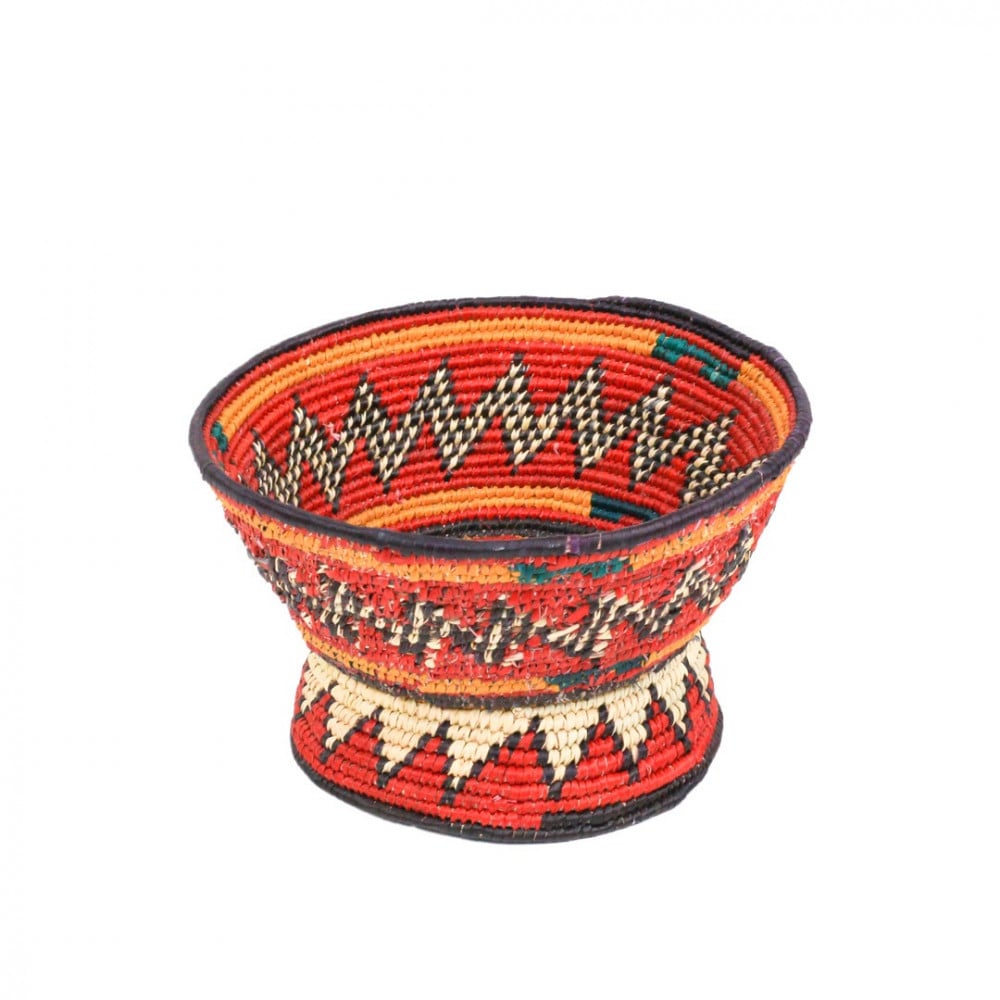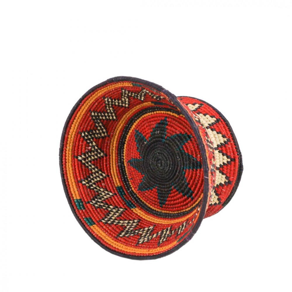 وعاء من الخوص يستخدم لتقديمات السفرة للضيوف يسمى ( مطرح ) مزين بالخيوط البرتقالية والتطريز شعبي.